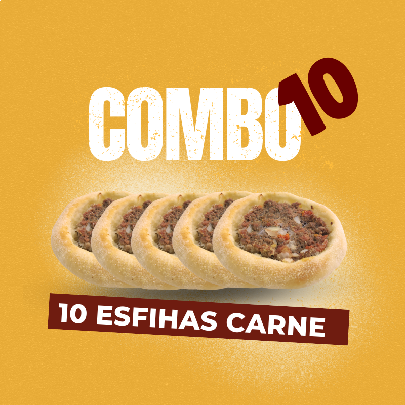 10 esfihas recheadas com carne temperada com o clássico sabor de receita de família, em massa leve e macia. Uma opção deliciosa e única!