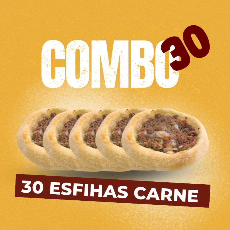 30 esfihas recheadas com carne temperada com o clássico sabor de receita de família, em massa leve e macia. Uma opção deliciosa e única!